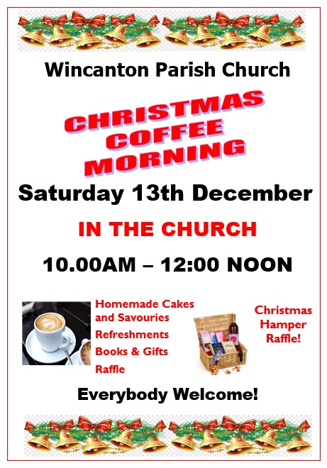 All Coffee Mornings are held in Church 10am – 12:00 noon on the 2nd Saturday of the month.