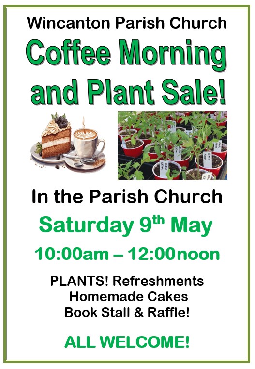 Coffee Morning Saturday 9th May PLANT SALE! 10.00am – 12:00 noon St Peter & St Paul’s Church PLANTS! Raffle, Homemade Cakes & Savouries, Bookstall & Refreshments! Everybody Welcome! All Coffee Mornings are held in Church 10am – 12:00 noon on the 2nd Saturday of the month.